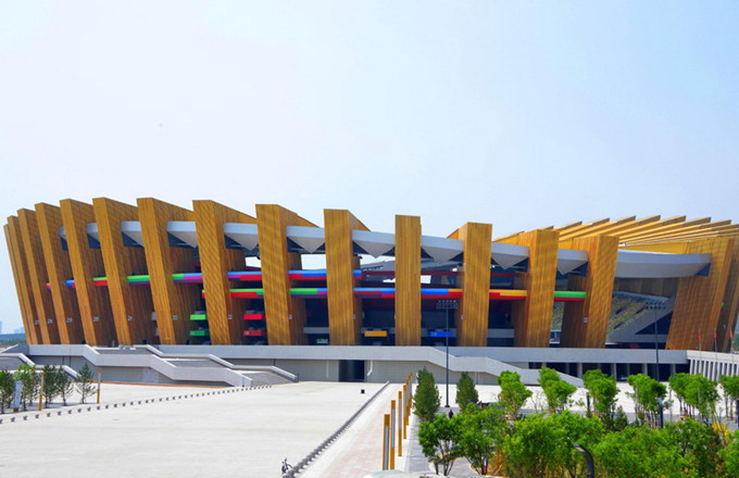鄂尔多斯市体育中心位于康巴什新区东北方向的高新科技园区阿布亥沟南岸,总占地面积70.88公顷,总建筑面积约25.9万㎡,主体建筑包括“一场两馆”即体育场、综合体育馆和游泳馆,体育中心建设标准为大型甲级体育建筑群,可以举办全国性综合运动会和国际单项体育赛事,为2015年第十届全国少数民族传统体育运动会开闭幕式主会场。